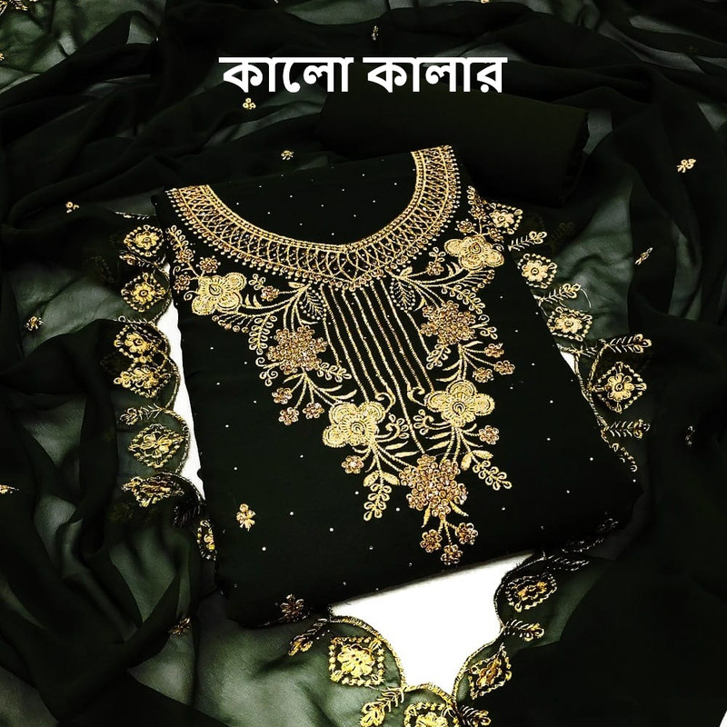 জর্জেট কাপড়ের ওপর নিখুঁত এমব্রয়ডারি আর ঝলমলে চুমকির কাজ—আপনাকে দেবে একদম এলিগ্যান্ট ও গর্জিয়াস লুক